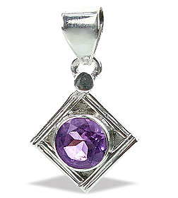Here is a pretty Amethyst pendant for you! This pendant has a round faceted Amethyst gemstone set in sterling silver stylish frame. Pendant is 3/4 inch long (measured without bail). Stone size - 7 mm.